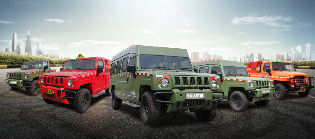 煤安車系列源于勇士二代軍車外型, 外觀威猛霸氣,標(biāo)配分時(shí)四驅(qū),采用全封閉多盤濕式制動(dòng)器, 安全可靠。發(fā)動(dòng)機(jī)采用慶鈴(五十鈴)防爆柴油機(jī),輸出扭矩大,達(dá)國三排放標(biāo)準(zhǔn)。